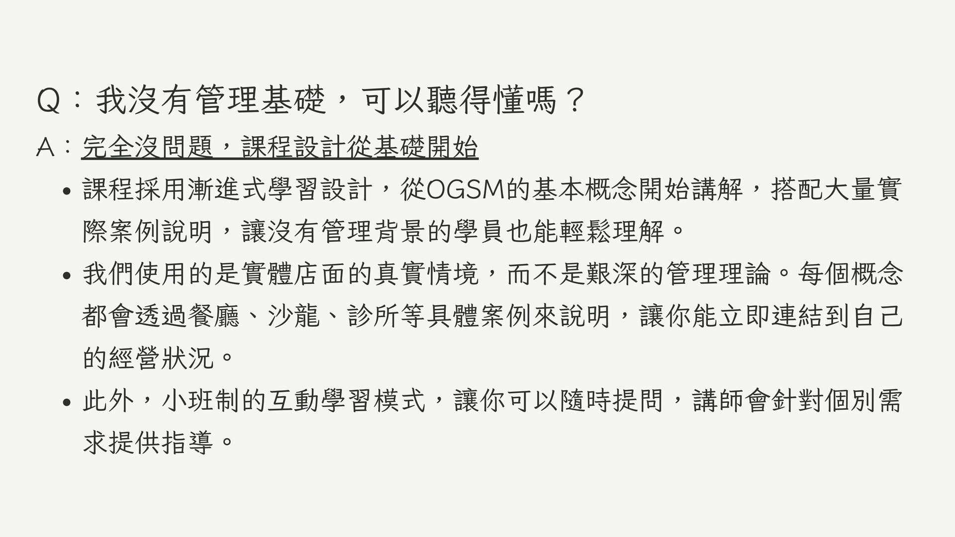 此線上內容原本是不對外公開,但很多朋友反應,不方便到台北上實體課,而我們近期也尚未有其他地區開課計畫;所以若確認無法參加線下班,但很想學習觀念,可報名此線上導讀課!